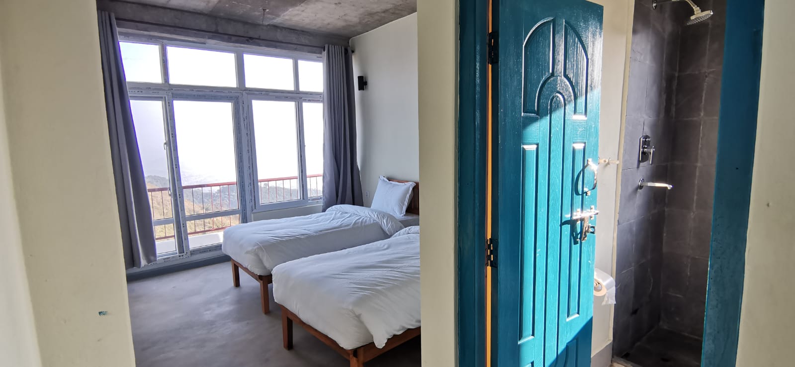 • 1 triple big room with one double bed and one single bed. Mountain facing on north side, it’s our biggest room in Bajthala.